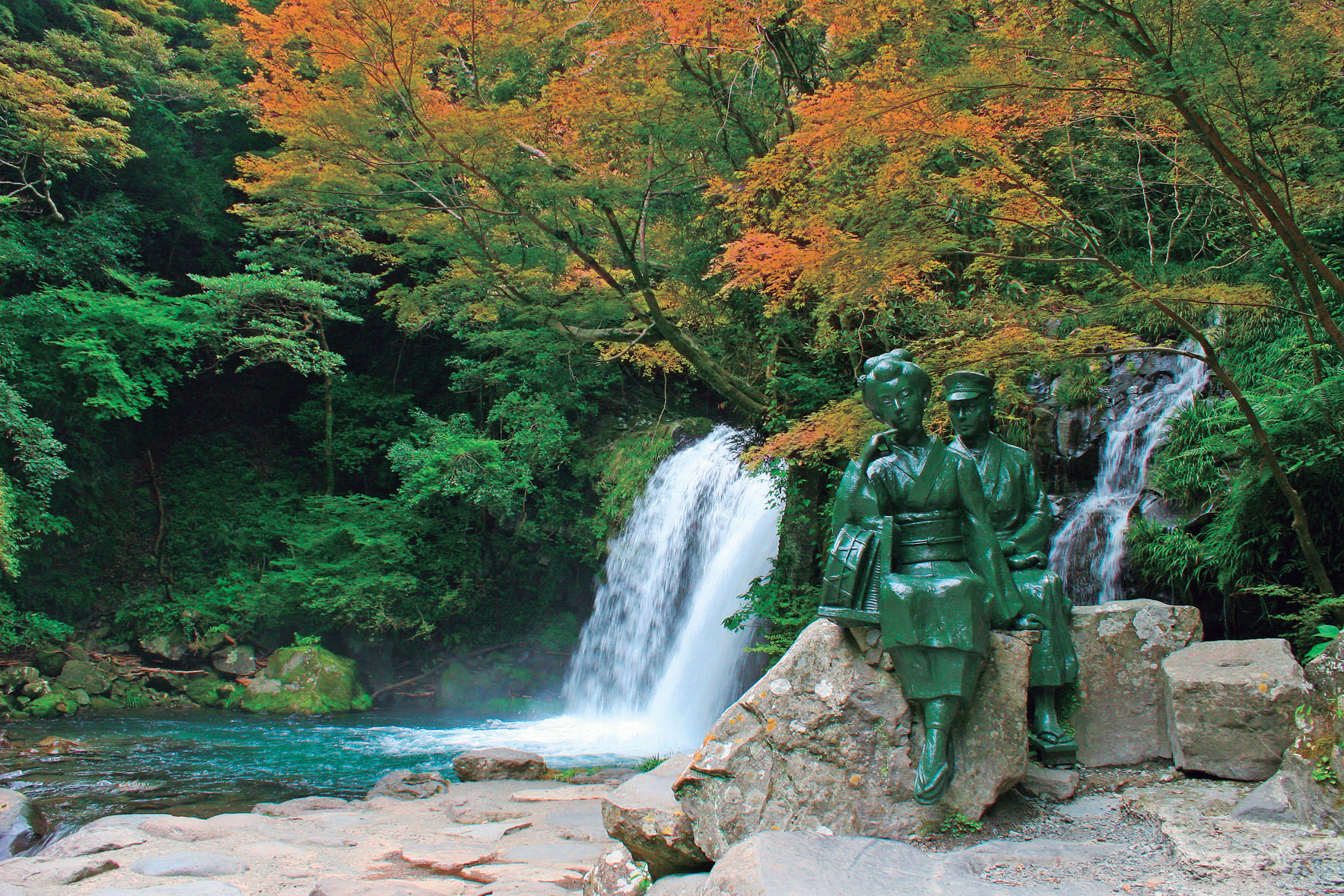| 概要 | 河津には数々の滝が存在します。その中でも特に有名どころになっている七つの滝を「河津七滝」(かわづななだる)と呼んでいます。 河津七滝は片道約1時間かけて巡ることが出来る全長850mの遊歩道があり、46mの吊り橋や伊豆の踊り子像が2ヶ所あります。落差22mの釜滝(かまだる)には滝のしぶきが当たるほど近い展望デッキがあります。 【七滝紹介】 ※大滝歩道開放時間 ツ黴 6月~9月…8時~18時 10月~5月…8時~17時