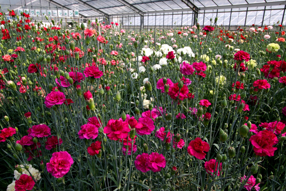 | 概要 | 河津町は隣の東伊豆町と並んでカーネーションの2大産地の1つであり、この2町で県内の出荷量の大半を占めています。 かわづカーネーション見本園では市場に出回っていない試験栽培を含む約353品種、約14,000株もの色とりどりのカーネーションを見る事が出来ます。 寒い季節や雨の日でも、暖かい温室の中でゆっくりお楽しみいただけます。
