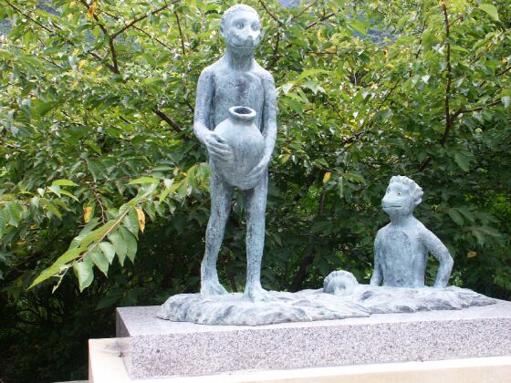 河童のかめ 古瀬戸風の黒褐色の焼き物で、底に、「祖母懐加藤 寺の伝承には昔、いたずらする河童が村人に懲らしめられている時、寺の住職に救われ、そのお礼に河童が置いていったという話があることから河童のかめと呼ばれるようになりました。 所在地/静岡県賀茂郡河津町谷津256 |