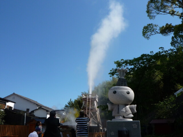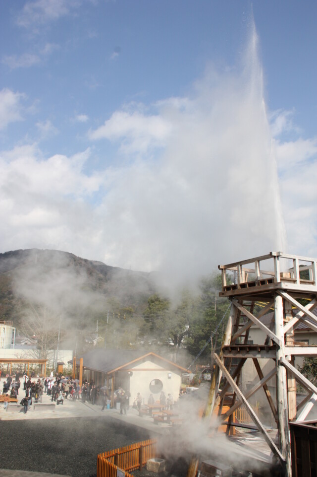 以来絶えることなく噴き上げ続けてます。1日7回100℃の温泉が毎分600リットル湧き、