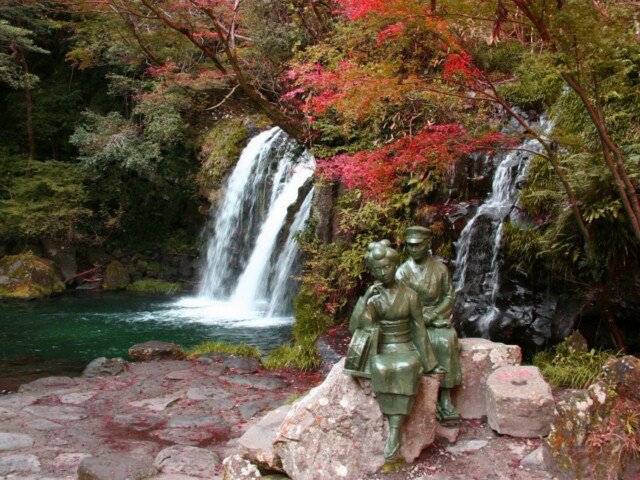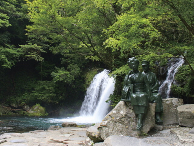 滝の近くには「伊豆の踊り子と私」のブロンズ像があり、人気の記念写真